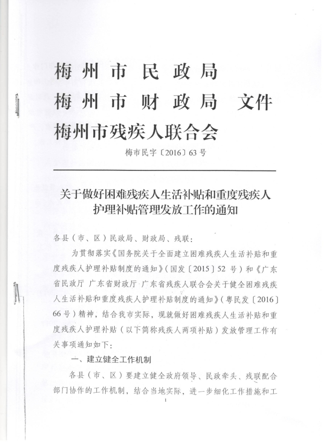 梅州市民政局 梅州市财政局 梅州市残疾人联合会