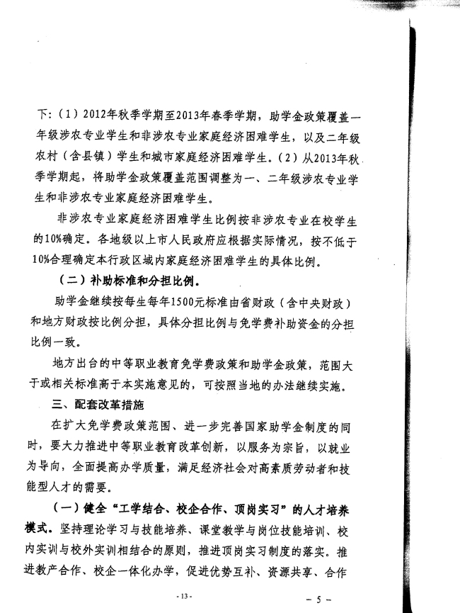 关于扩大中等职业教育免学费政策范围进一步完善国家助学金制度的实施意见