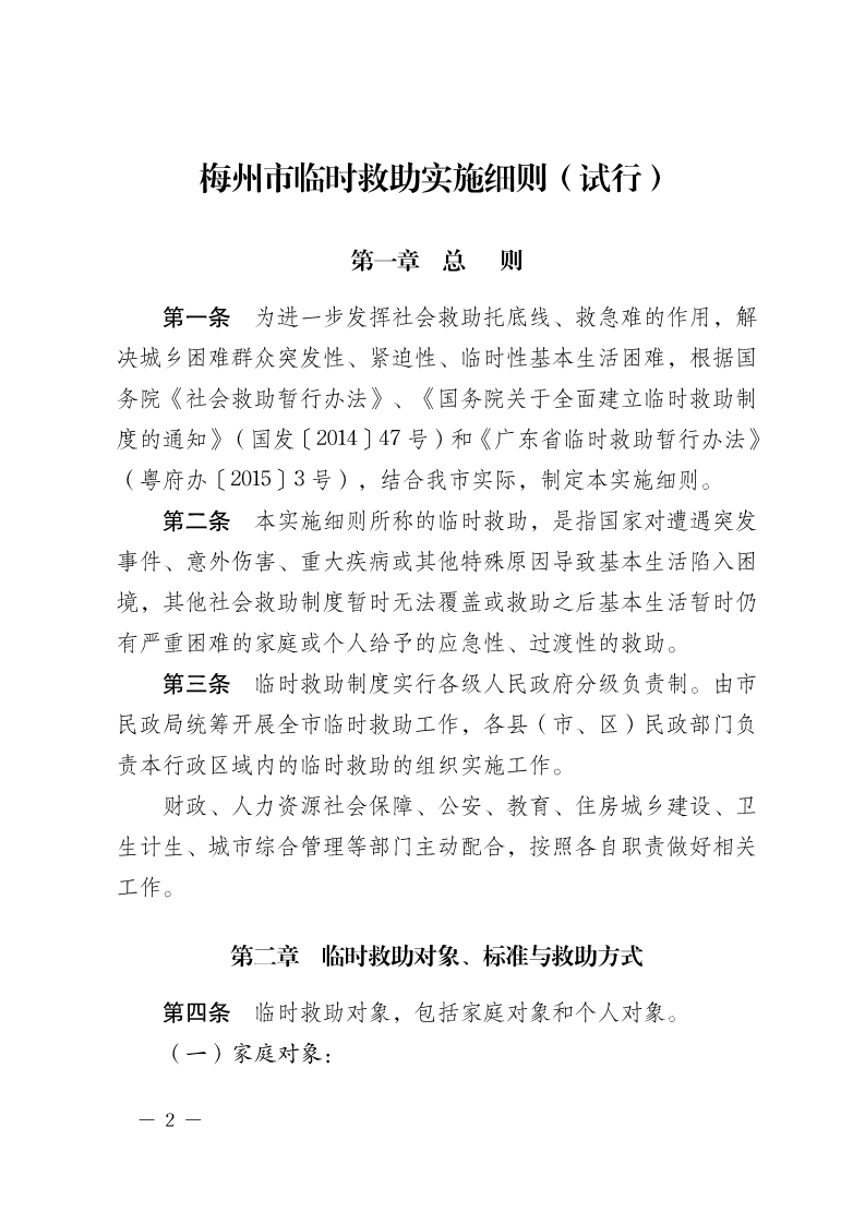 梅州市人民政府办公室关于印发梅州市临时救助实施细则(试行)的通知